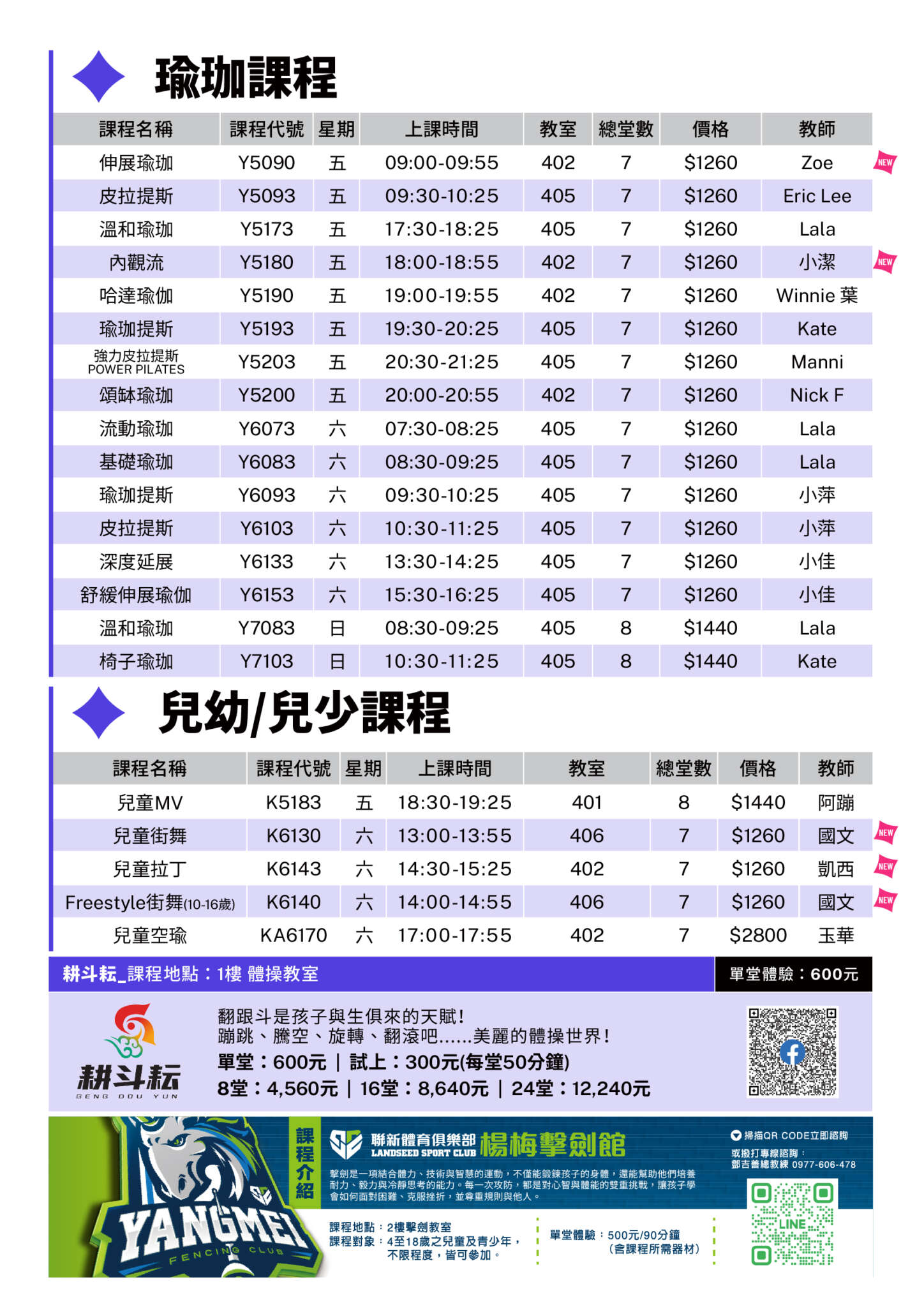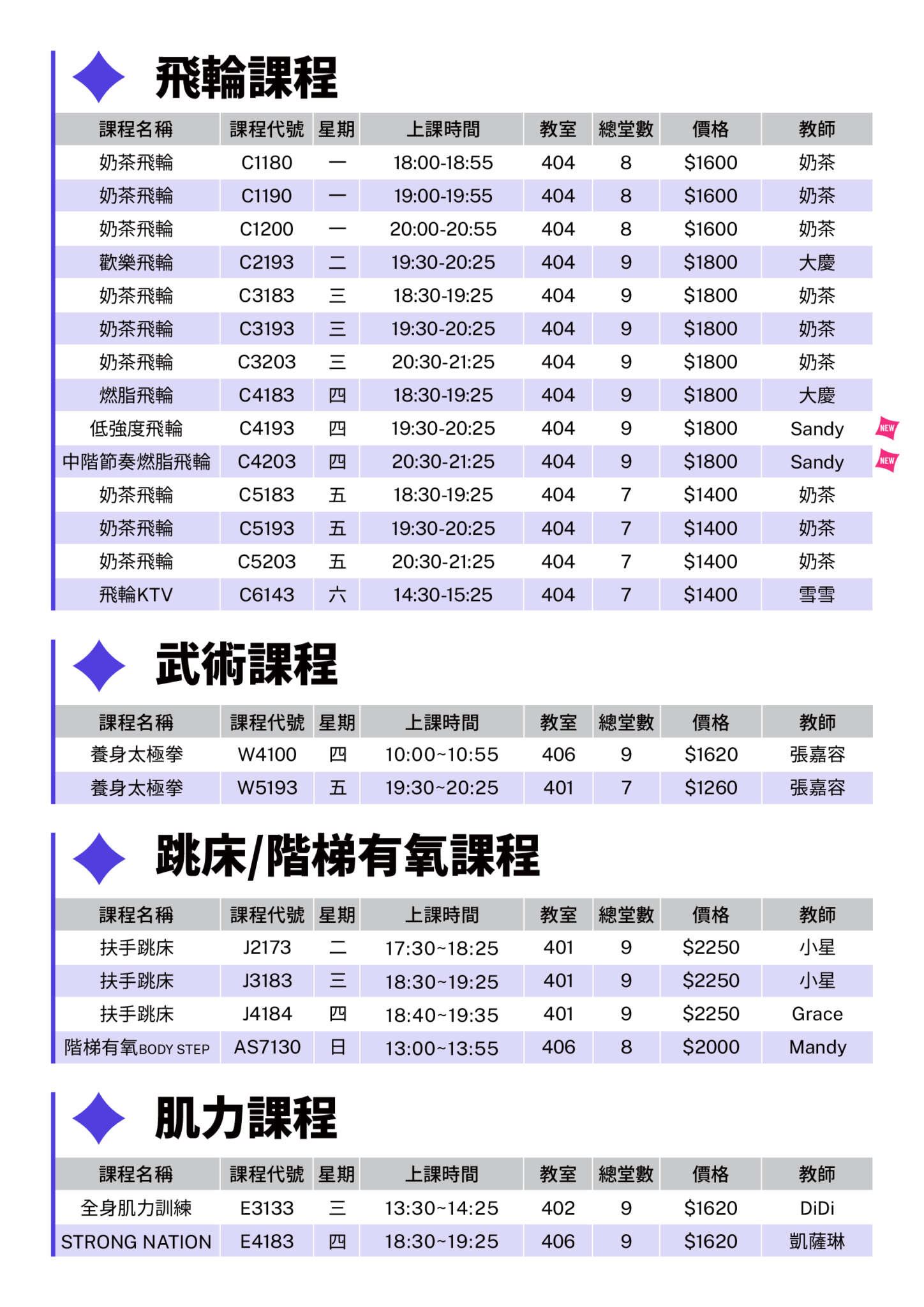 03–04 月團體課程|有氧・瑜珈・舞蹈・肌力