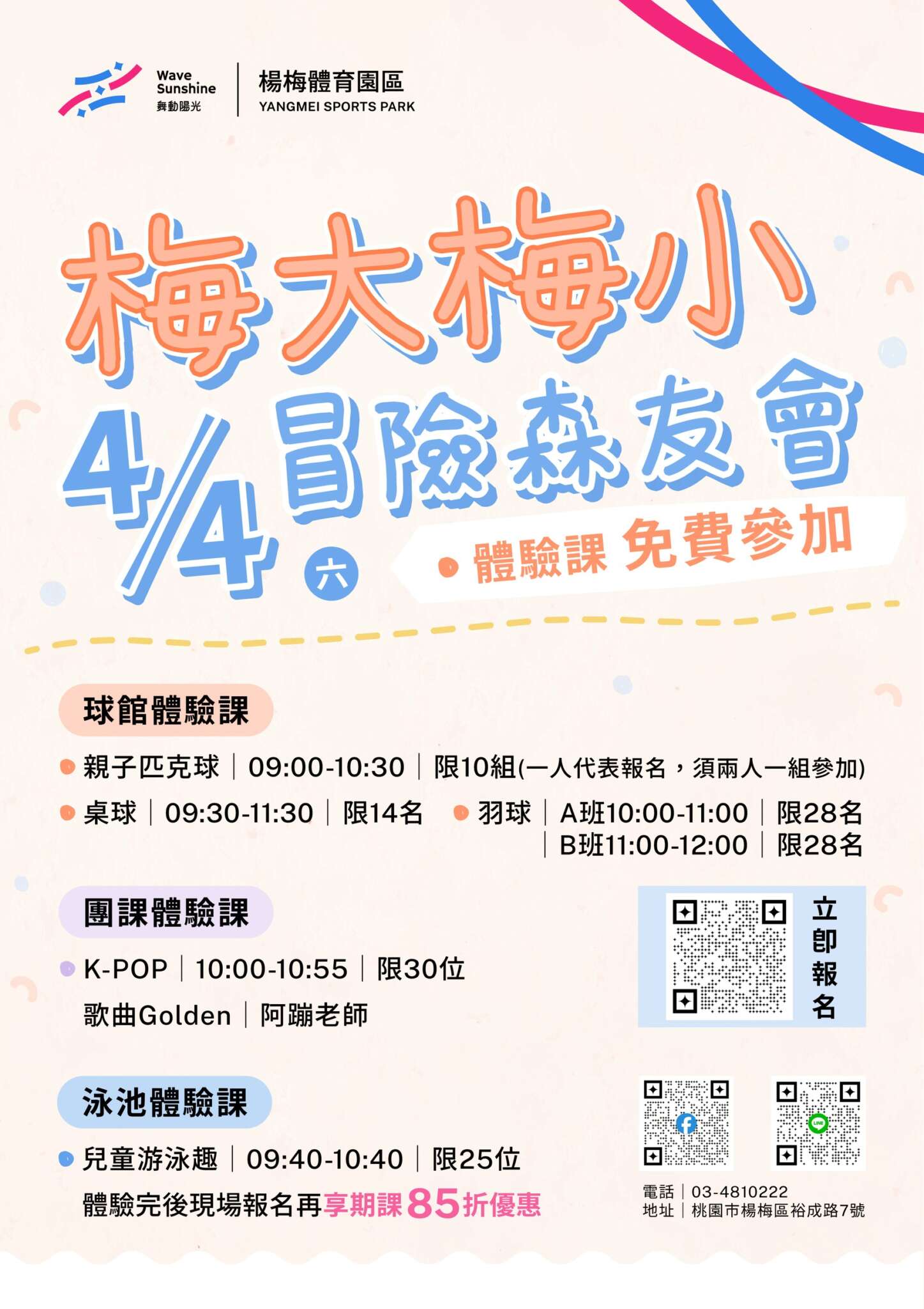 • 活動地點:楊梅體育園區(桃園市楊梅區裕成路7號)